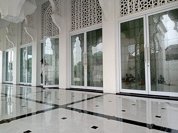 Kaca patri kuningan elegan, tahan lama, tampil mewah, cocok untuk masjid, gereja, rumah mewah, hingga bangunan komersial eksklusif.